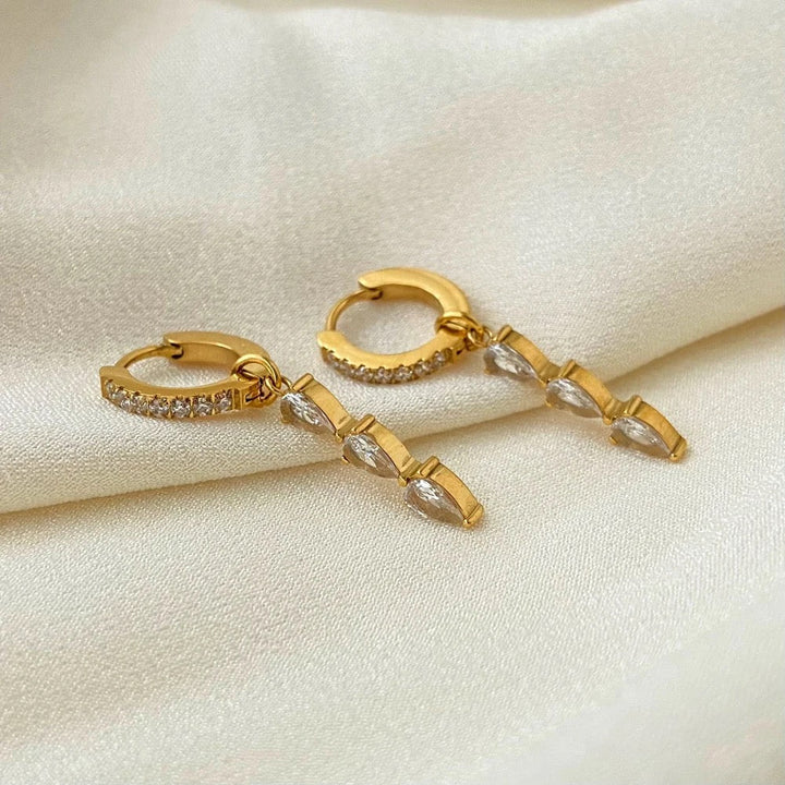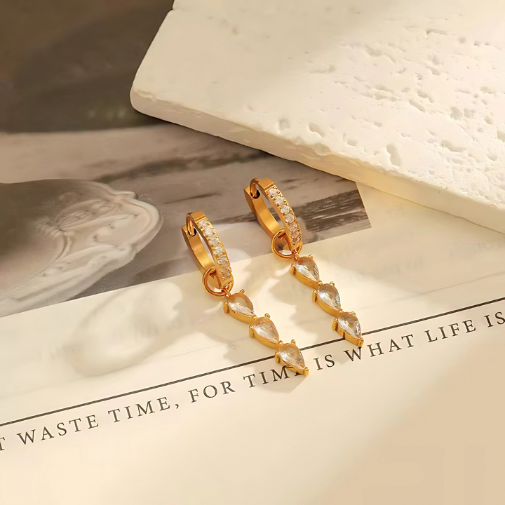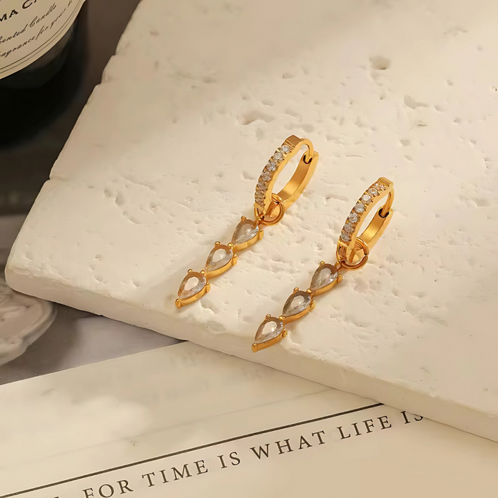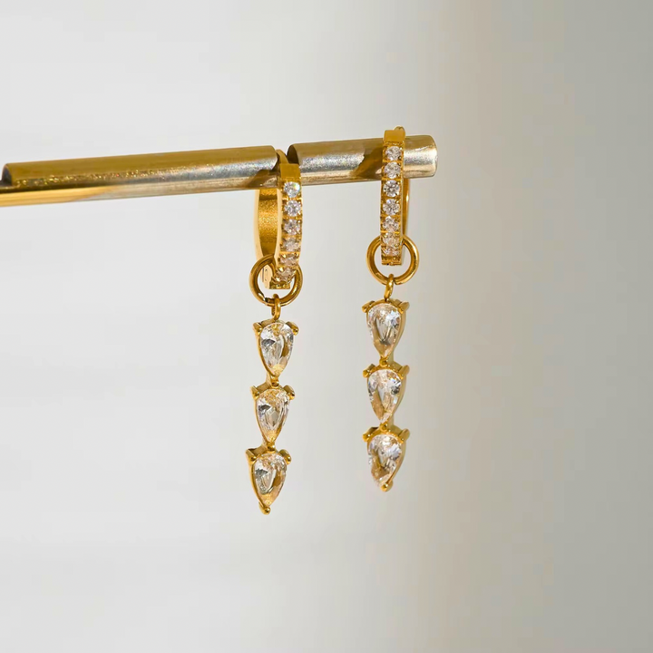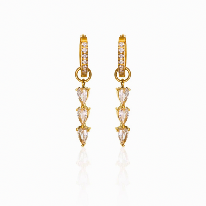 18kt Gold Plated Cubic Zirconia Rain Drop Round Hoop Earrings, Pandora